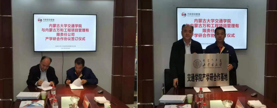 會議上,雙方還舉行了產(chǎn)學(xué)研合作協(xié)議簽訂和授牌儀式。我院與內(nèi)蒙古萬和項目管理有限公司高質(zhì)量校企合作正式啟動。