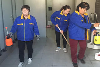 后勤人員對(duì)教學(xué)樓內(nèi)、交通樓內(nèi)衛(wèi)生間進(jìn)行消毒