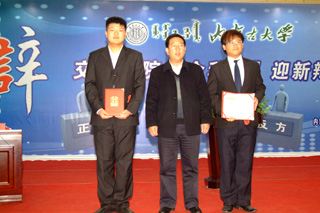 學(xué)院學(xué)工處副處長(zhǎng)、團(tuán)委副書記高飛(右)、 組織宣傳科副科長(zhǎng)董小紅(左) |
